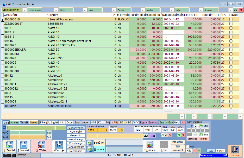 A cikk előállítási árának nyomon követése. Utólagos beszerzési ár változás karbantartás.